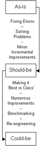 Process redesign starts with process identification (e.g., bounding and mapping) and moves forward with an analysis to determine process issues, deficiencies, etc. Proceeding steps address how to improve or repair the process.