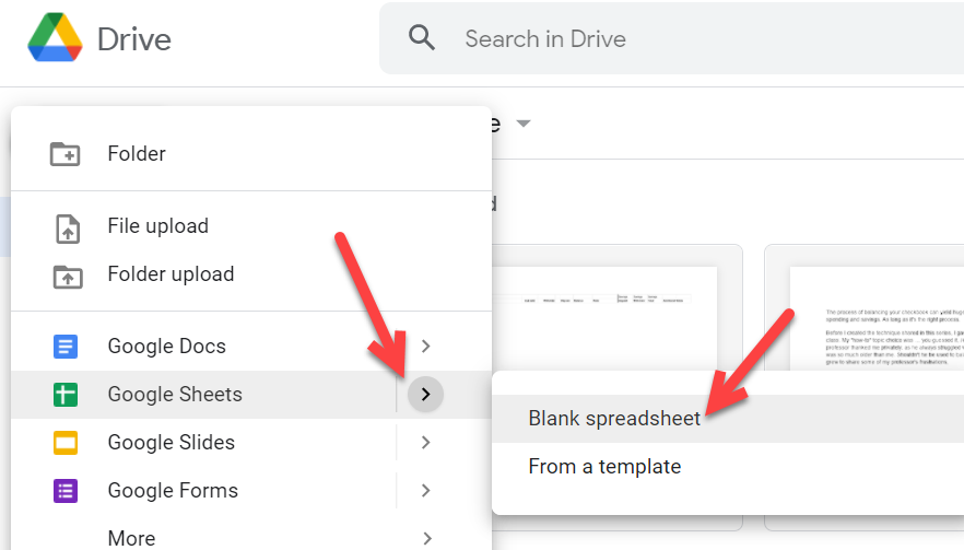 - Select Google Sheets then Blank spreadsheet.