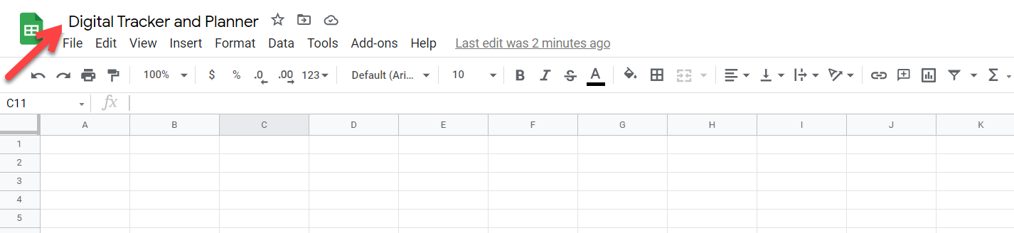 - Enter a sheet name: Digital Tracker and Planner.