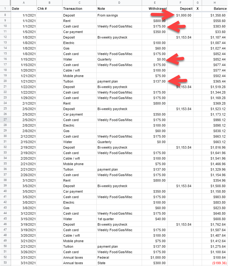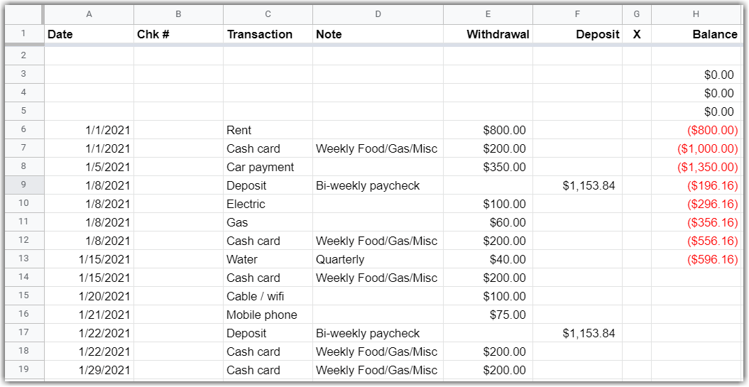 - But you are facing negative balance numbers, Lesson 5d: Front Loaded Paycheck Plan might help.